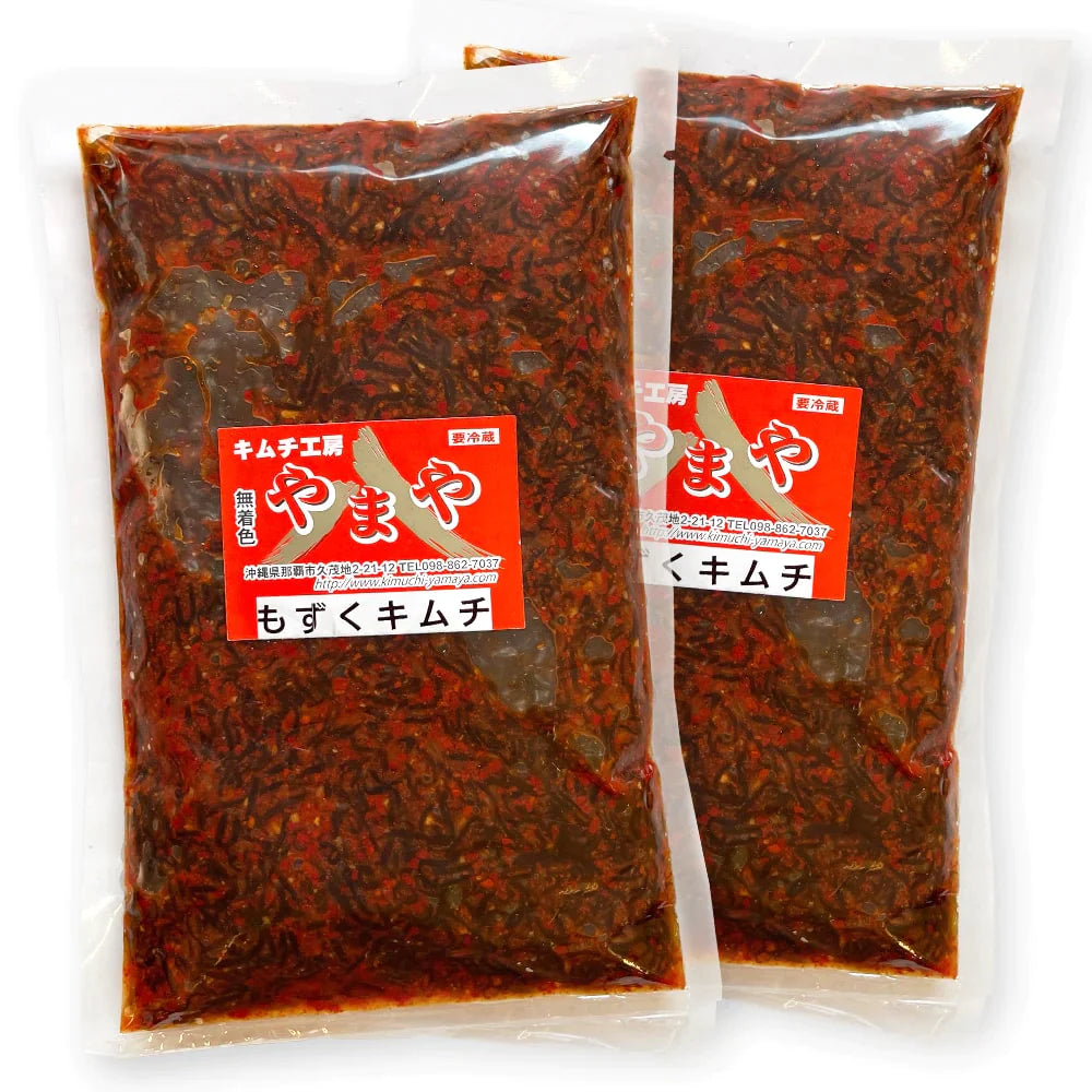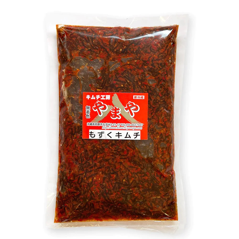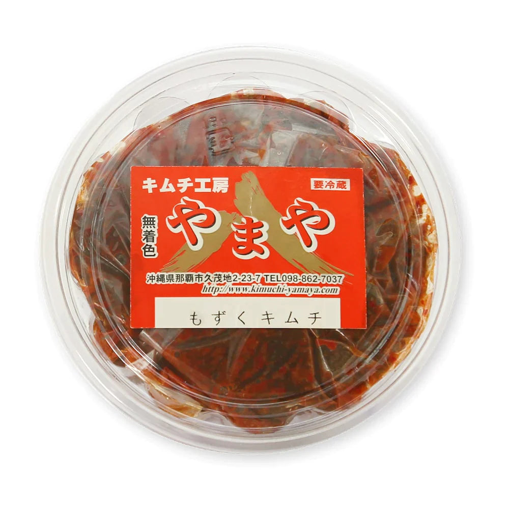 Yamaya's Special Mozuku Kimchi" is the exquisite combination of this top quality kimchi sauce and mozuku seaweed. It is seasoned to give a deep sweetness when served on warm rice.