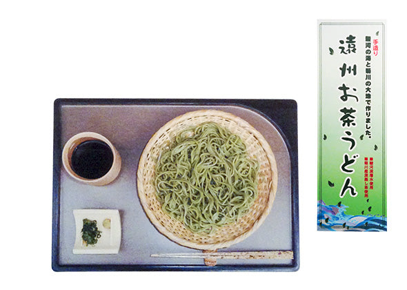 静岡県遠州産深蒸し茶と駿河湾海洋深層水を使用し、細麺のお茶うどんに仕上げました。お茶の風味豊かな一品です。麺を湯がいたお湯は、蕎麦湯ならぬお茶湯としても大変おいしくいただけます!